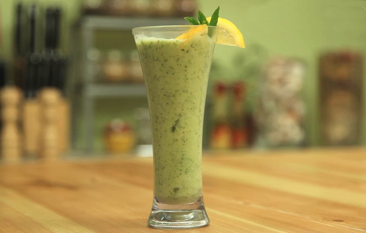 - في الخلاط نضع التفاح,عصيرالليمون و الخيار ومكعبات الثلج ونخلط حتى يصبح القوام ناعم.