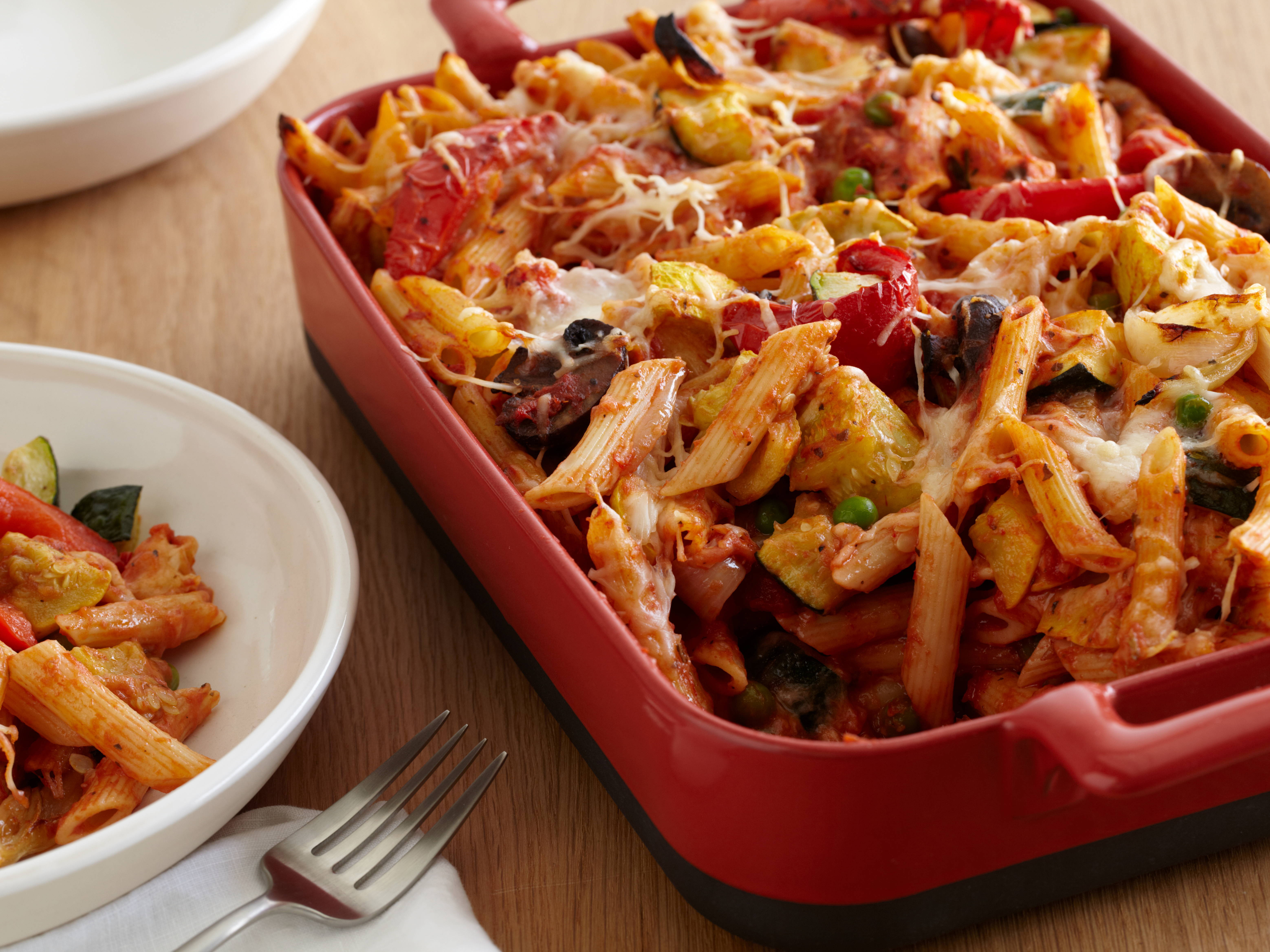- يُسكب الدجاج ومعجون الطماطم فوق المعكرونة المطبوخة ويُضاف الفطر المقطّع والبازيلاء والجزر والكوسى وتُمزج المكوّنات بهدوء حتى تُغطّى المعكرونة بالكامل.