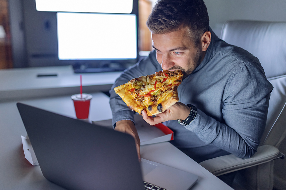 يؤدي الصيام أو التهام الوجبات السريعة أو تناول الوجبات الثقيلة إلى إبطاء عملية الهضم ما يؤدي إلى الإرهاق وضعف اتخاذ القرار، كما أنه يبطئ من وقت رد الفعل، إن تناول النوع الصحيح من الطعام لا يغذي جسمك فحسب، بل يحسن اليقظة أيضًا، وهذا بدوره يحسن التركيز ومدى الانتباه وهو وضع مفيد للجميع في مكان العمل.