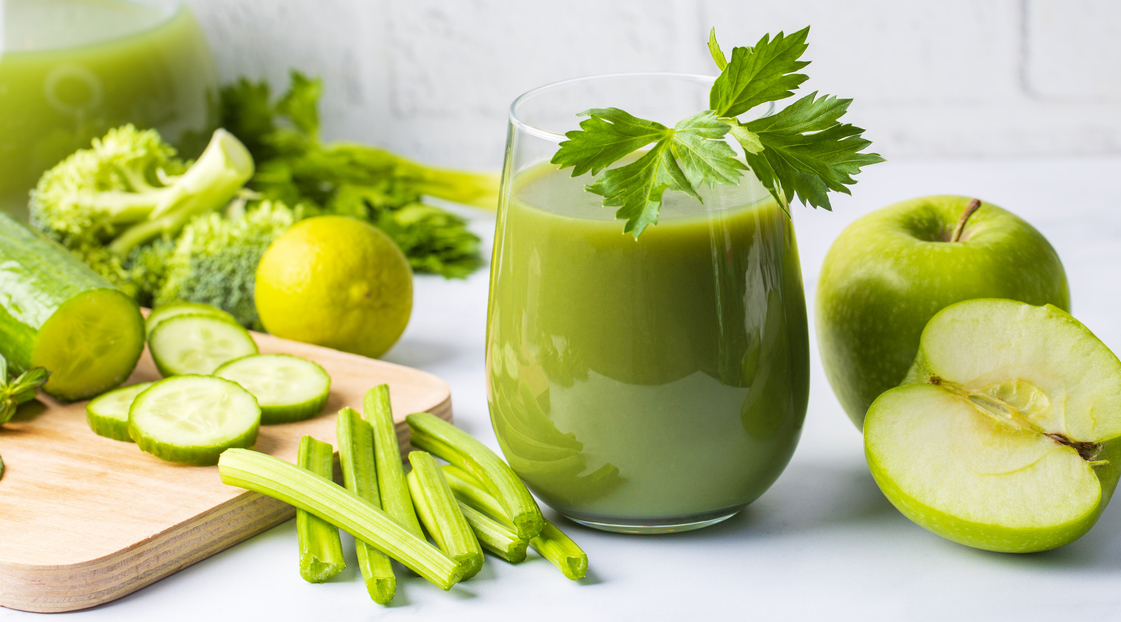 يبدأ يومك بشكل مختلف تماما عندما تمسك كوب العصير الأخضر؛ ذلك المزيج المنعش الذي يجمع غالبا بين السبانخ والخيار والتفاح والكرفس، وأحيانا يضاف إليه الليمون أو الزنجبيل.