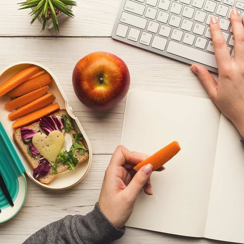 من المهم أن تختار الأطعمة التي تتناولها بحكمة أثناء ساعات العمل، بحيث تختار وجبات صحية تشعرك بالشبع والامتلاء ولن تساعد الأطعمة السريعة مثل قطع الحلوى والصودا ورقائق البطاطس في توفير الطاقة لك خلال فترة ما بعد الظهر- ويمكن أن يؤدي الاستهلاك المستمر للأطعمة السريعة إلى الإضرار بجسمك على المدى الطويل من خلال زيادة خطر الإصابة بالأمراض.